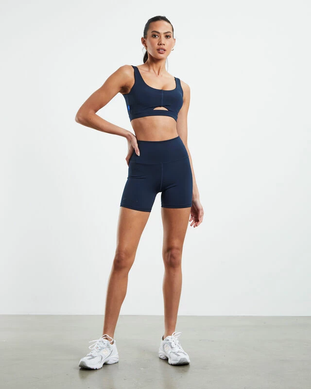 The 03 Outdoor Active Crop by Kynd Society has been created to support you during medium to high intensity activity and comes in a navy colourway. The crop is crafted with a buttery-soft fabrication and is designed to provide a non-restrictive fit with it’s firm yet stretchy elasticated waistband. Featuring cut-out details, fixed shoulder straps, removable padding and subtle branding. Make it a two-piece set with the 03 Outdoor Bike Shorts Navy.