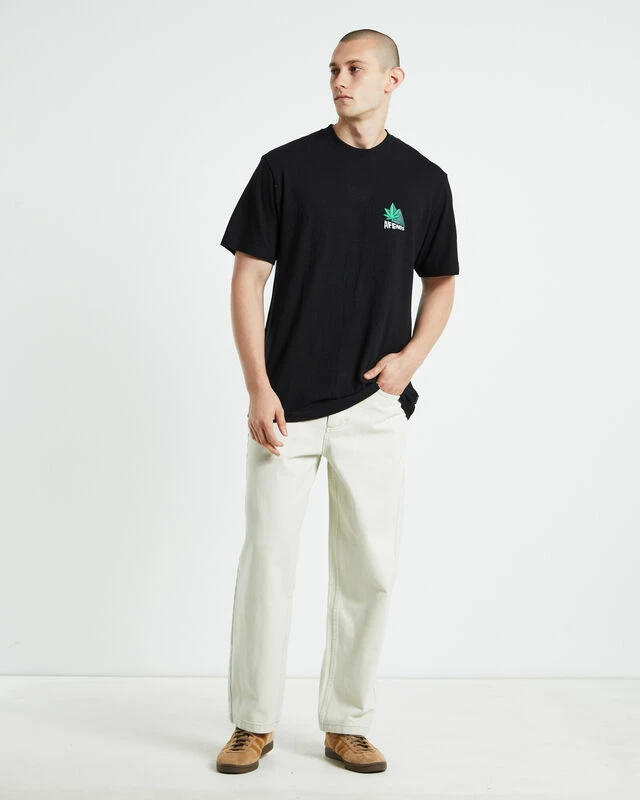 The Crops Hemp Retro Fit Short Sleeve T-Shirt by Afends comes in a black colourway and is designed in a regular fit. The t-shirt features signature branding at the left chest, short sleeves, ribbed crew neckline and straight hem. For an easy going look, pair back with baggy jeans and sneakers.