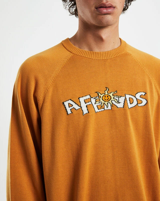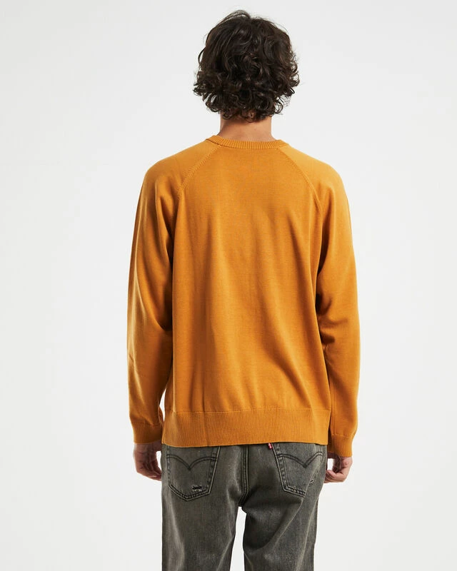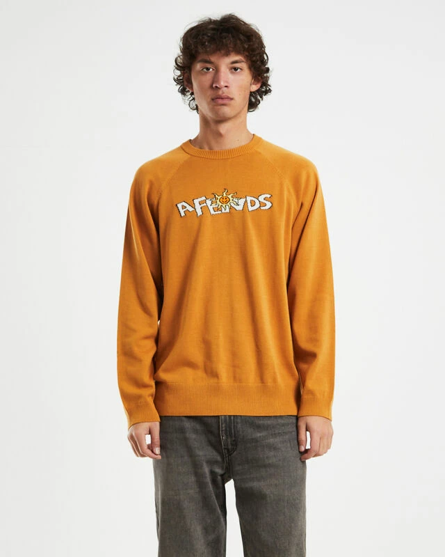 The Farming Recycled Knit by Afends comes in a mustard yellow colourway. This style is crafted from a soft knitted fabrication featuring signature branding at the centre chest, rib trims, crew neckline and has a slouchy fit.