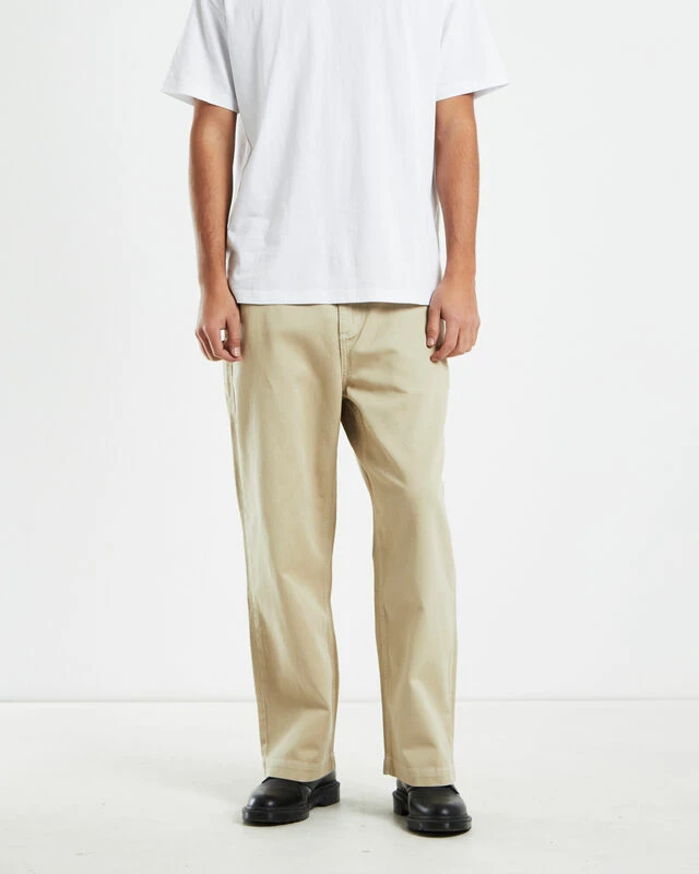 The Pablo Pants by Afends comes in the cement colourway and is designed in a loose fit. The pants feature a wide leg profile, contrast stitching, zip-fly with button closure, five-pocket styling, belt loops and a signature brand patch at the reverse.