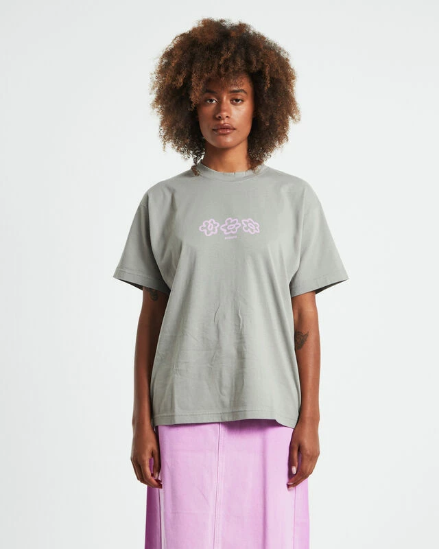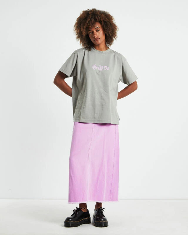 The Recycled Oversized Short sleeve T-Shirt by Afends comes in an olive green colourway and is designed with an oversized fit. this style is designed with signature branding at the centre chest, crew neckline, short sleeves and straight hem. Pair back with a coloured maxi skirt and low-cut Dr Martens for an authentic look.