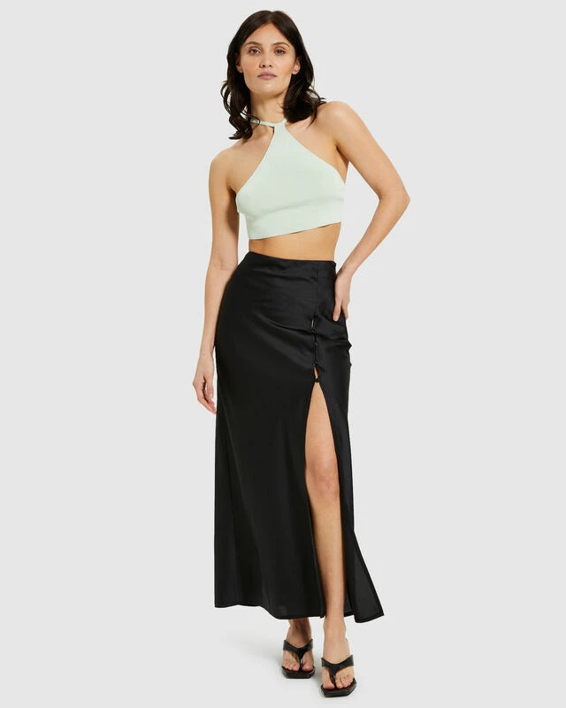 The Agatha Knit Crop Top by Alice In The Eve is a cropped top which comes in a sage green colourway. The top is made from a knitted material and features a wrap closure at the back and high halter neck. Wear this top for a night out with the girls and pair back with leather pants and heeled booties.
