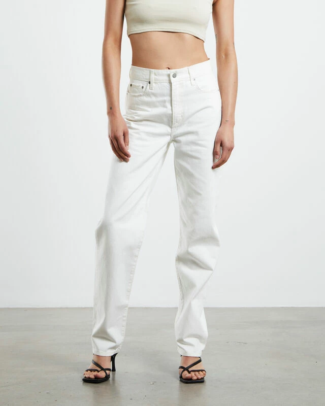 The Andi Jeans by Nobody are a white colourway with a straight leg fit. The jeans are high waisted and feature a button closure waistband, five pockets and belt loops. Wear these jeans for a night out with the girls and pair back with a statement crop and heels.