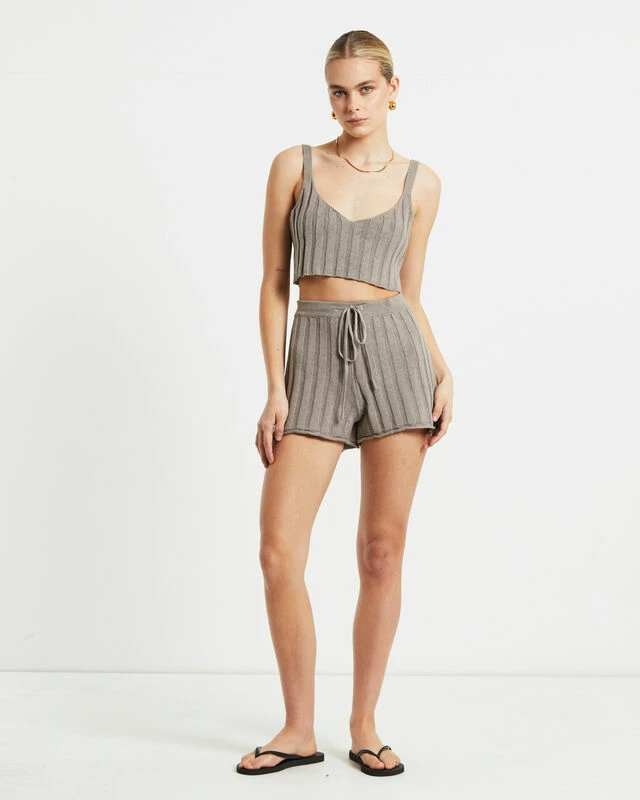 The Bambi Knit Short by Subtitled comes in a mushroom colourway and has a ribbed knit fabrication. This style features an elasticated waist with drawcord closure, rolled hem and relaxed fit.