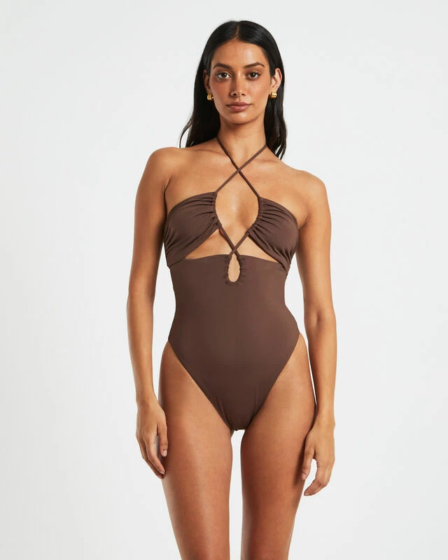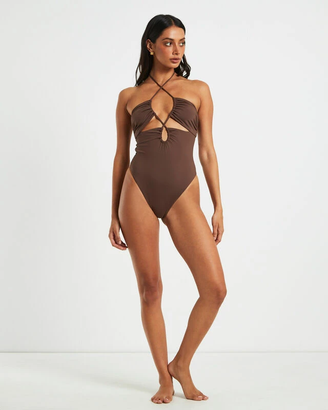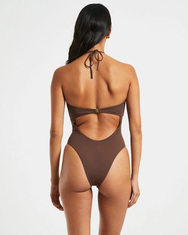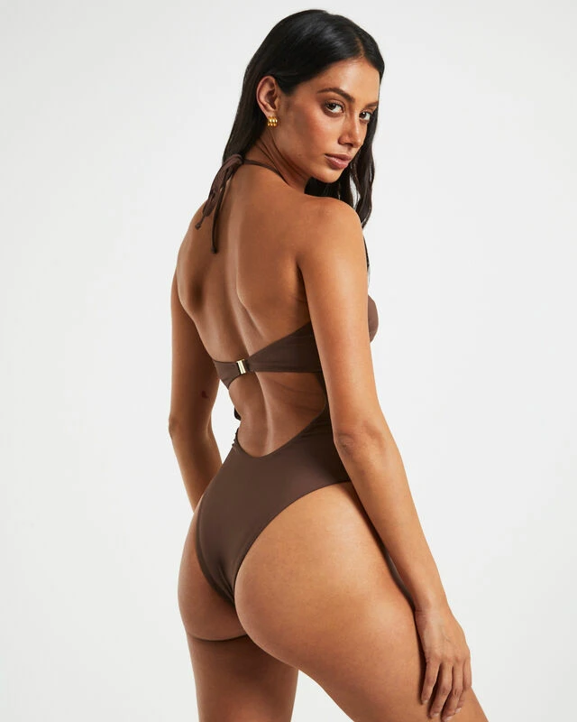 The Bandeau One Piece by Subtitled is the perfect addition to your summer swim rotation. This style comes in a coffee brown colourway and features a halter v-cut neckline and clasp closure reverse. Mix and match our new season swimwear in a range of shapes and colours for different looks and styles.