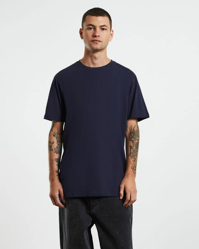 The Basic Crew T-Shirt by General Pants Co. Basics is a regular fit tee, made in a soft cotton fabrication. This style comes in a navy colourway with a ribbed crew neckline, short sleeves, plain design and a straight hem. For a classic look, team it up with yours shorts and jeans for an on repeat style.