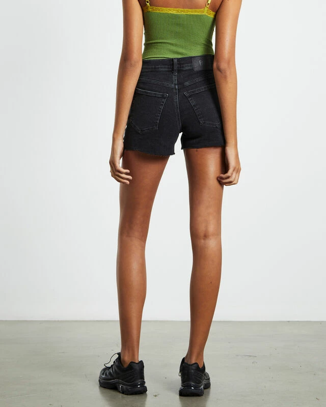 The Aline Cutoff Denim Short by BDG Urban Outfitters comes in a washed black colourway and is designed in an a-line fit with a mid-rise. The shorts feature a raw cut-off hem, zip front with button closure, 5-pocket styling, belt loops and brand patch at the reverse. Style with a cropped top and sneakers for a look for any occasion.