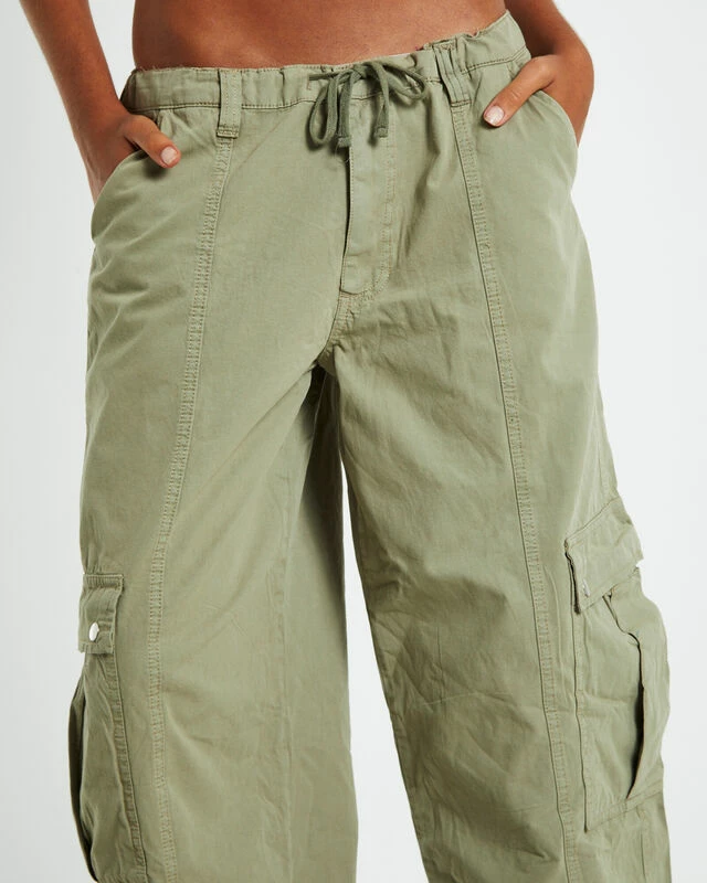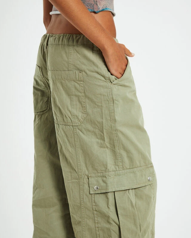 The Toni Cargo Pant by BDG Urban Outfitters comes in a khaki colourway and is designed in a baggy fit with a cargo style. The pants feature an elasticated waistband, drawstring at waistband and ankles, zip-fly with button closure, 6-pocket styling with utility pockets at the sides, belt loops and vertical seam detailing. Pair back with a graphic tank and sneakers to complete the look.
