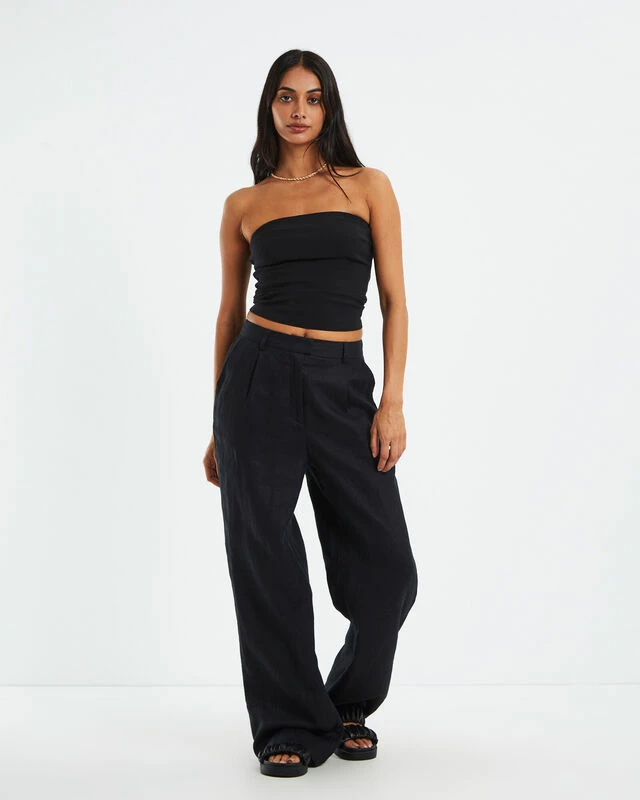 The Bronte Longline Tube Top by Subtitled is cropped in length and comes in a black colourway. The top is a bandeau style design, a slim fit and stretchy fabrication. Pair it back with low-rise linen pants and sandals for a simple summer look. Our model is wearing a size small. She is 176cm with a 81cm bust, a 64cm waist and 88cm hips.