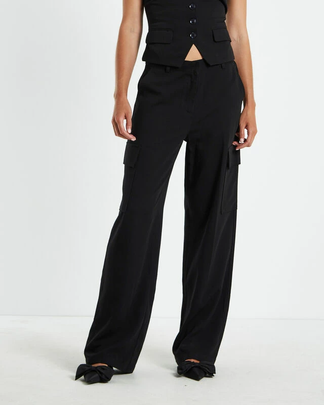The Brooklyn Low Rise Utility Pant by Subtitled comes in a black shade that can pair well with anything. Crafted in a low rise, relaxed straight fit with cargo pockets. Style with the matching Brooklyn Strapless Vest and a pair of pointed heels to complete the look.