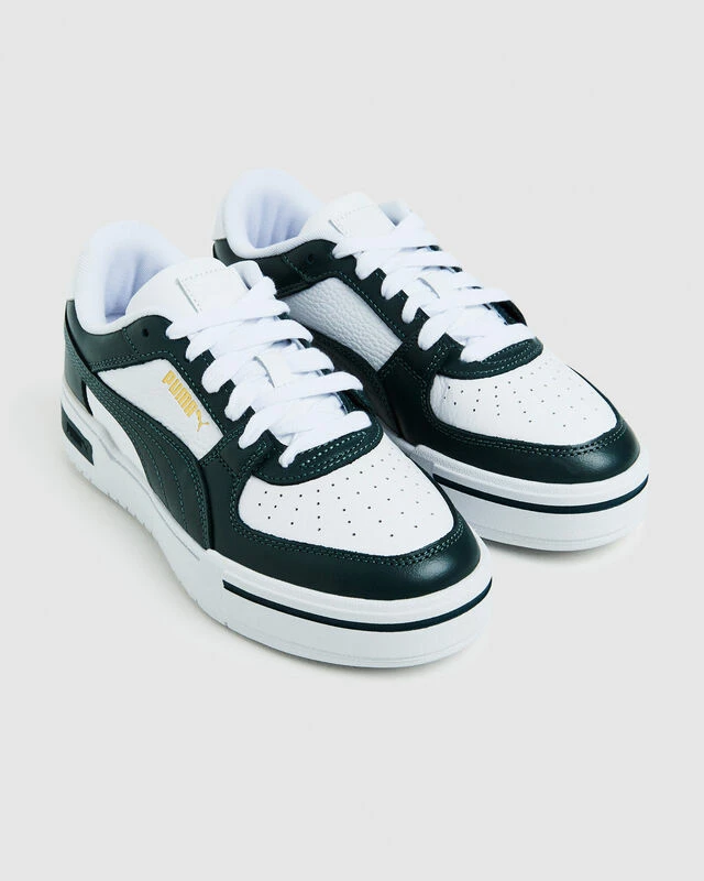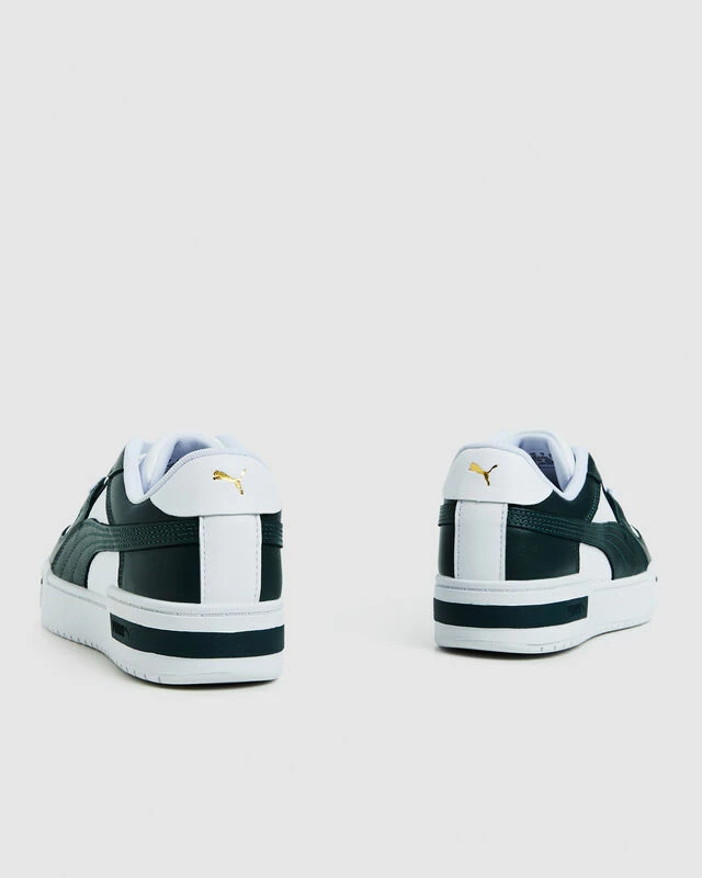 The CA Pro Classic Sneakers by Puma feature an iconic silhouette that comes in a white and green colourway. Designed with lace closure for a snug fit and rubber midsole and outsole. The sneakers detail Puma branding at the heel, tongue and a green formstrip aspect on the sides