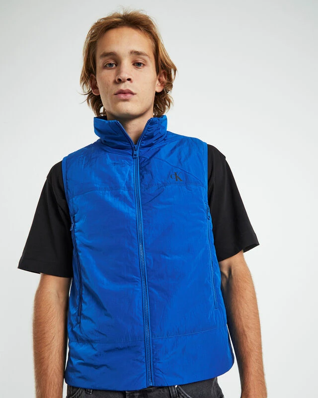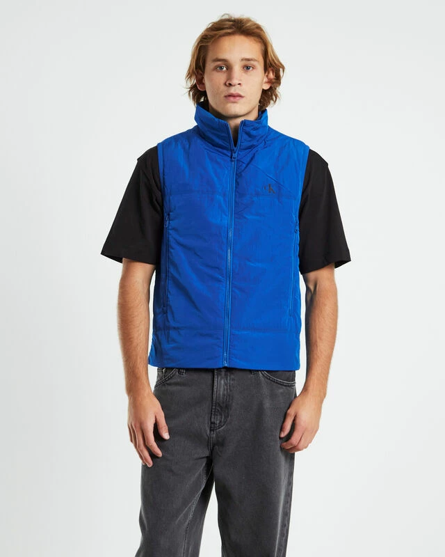 Calvin Klein Badge Crinkle Nylon Vest In Blue