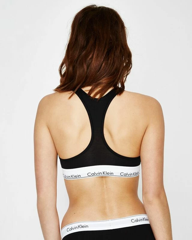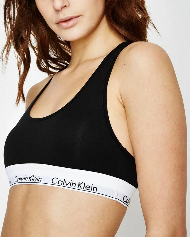 The Modern Cotton Bralette by Calvin Klein is a crop top in a soft jersey fabrication. This bralette features a wide elastic band under the bust with Calvin Klein branding as well as racer back straps.