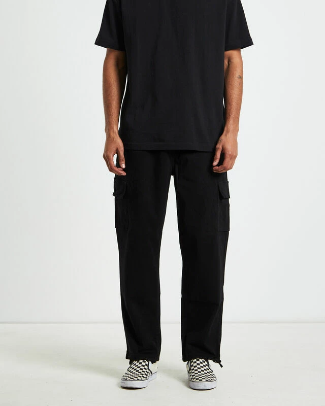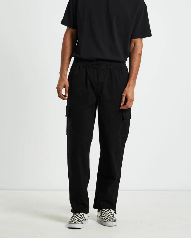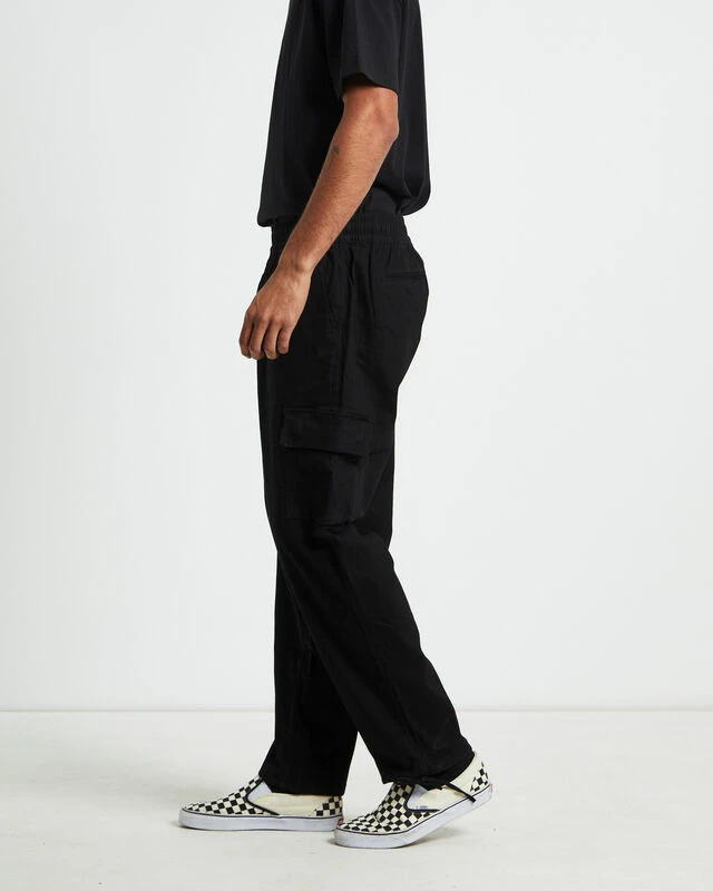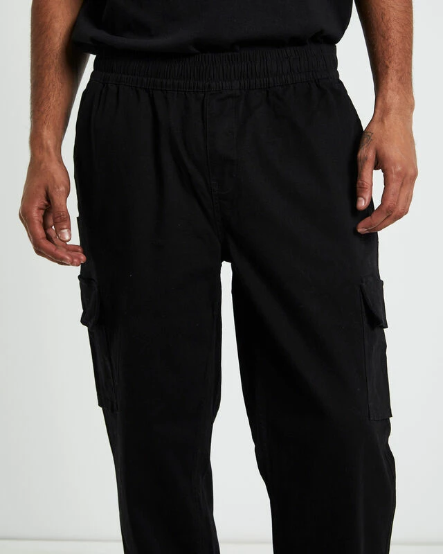 The Cargo Pants by Taikan comes in a sand colourway. This style is constructed in super soft cotton twill with elastic waist and hidden draw cords at the bottom cuff. Pair these with a black hoodie and a pair of sneakers to complete a casual day look.