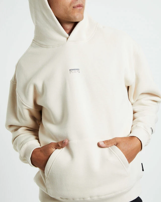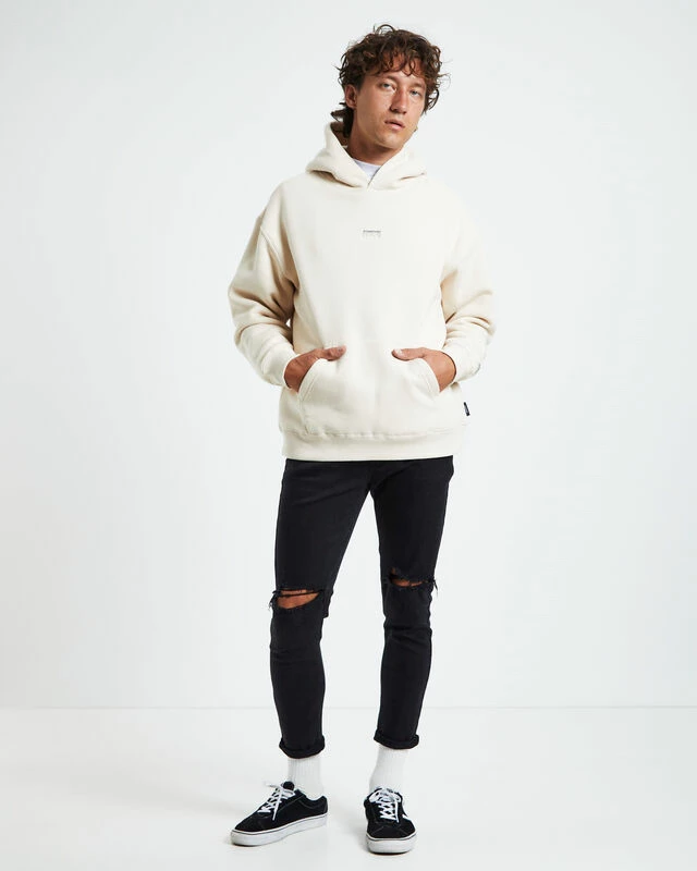 The Code Hoodie by Standard is a regular fit long sleeve jumper. Featuring in a pearl white colourway with minimal branding at chest, front kangaroo pocket, large hood, soft fleece interior and finished off with ribbed trims. Pair back with black skinny jeans and sneakers for an effortless look.