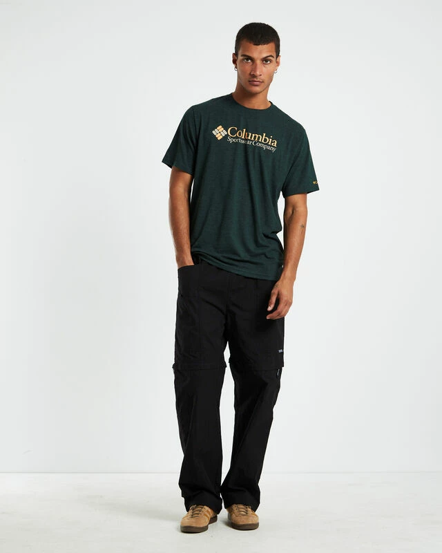 The Retro Logo Short Sleeve T-Shirt by Columbia comes in a heather green colourway. This style is crafted with the signature Columbia front print logo, ribbed crew neckline and a regular fit. Pair this witha pair of baggy black jeans and a pair of Vans to complete the look.