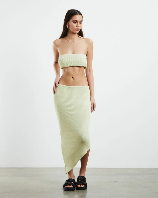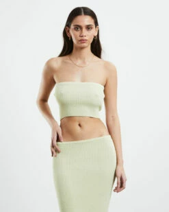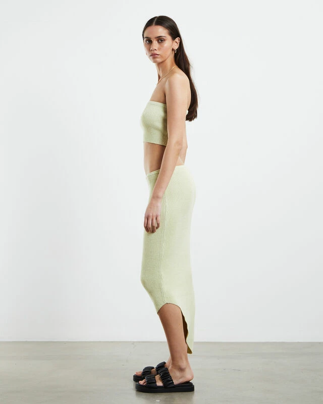 The Davia Knit Crop Top by SNDYS comes in a pear green colourway. The top is crafted from a ribbed knitted fabrication and features a cropped length and sleeveless silhouette. Make it a two-piece set with the Davia Skirt Pear Green.