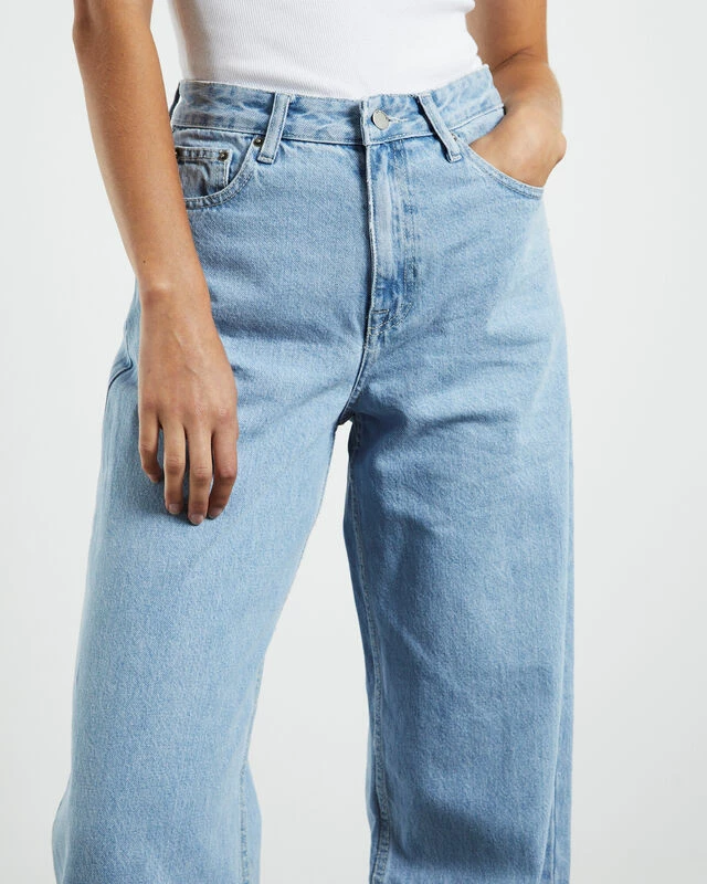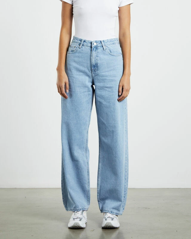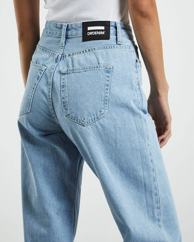 The Donna Pebbled Jeans by Dr Denim come in a light blue wash. The jeans are a relaxed fit and are designed with a wide, straight leg profile. Featuring five pockets, zip fly with button closure, belt loops and signature branding. Pair it with a white baby tee and a pair of Doc Martens to complete the look.