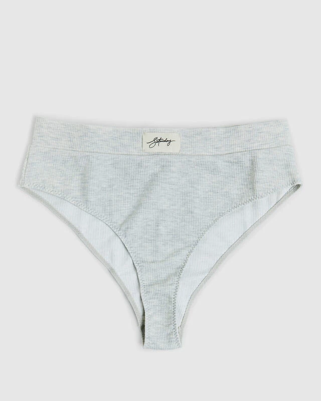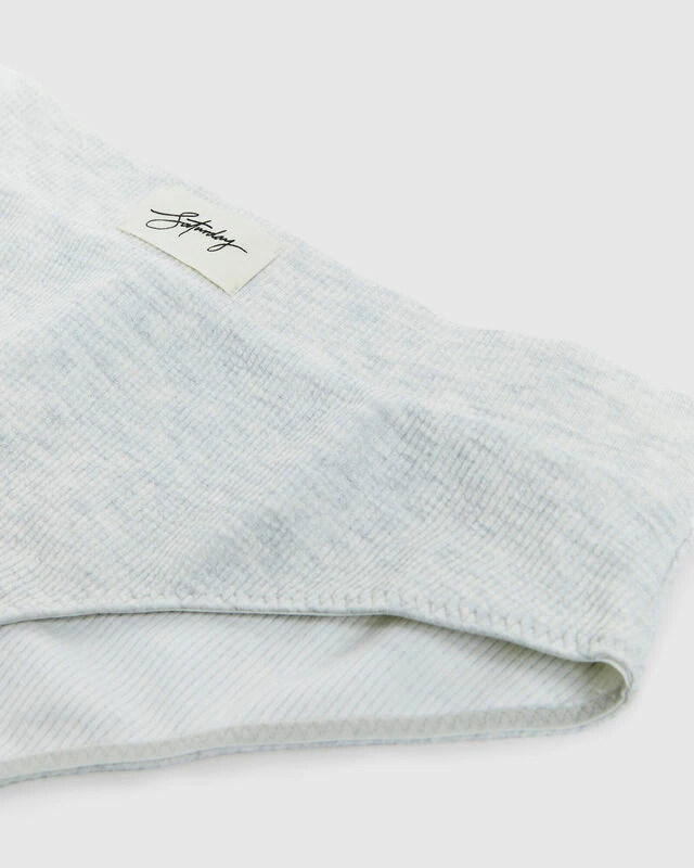 The Elle Ribbed Cotton Boyfriend Briefs by Saturday The Label are constructed from a soft ribbed cotton and are a mid-rise boyfriend style. This style comes in a grey marle colourway and is a collaboration piece with Elle Ferguson. Featuring a thick waistband and signature branding at centre front.