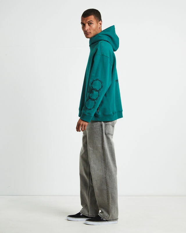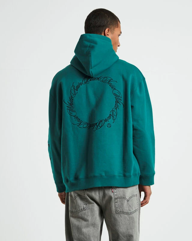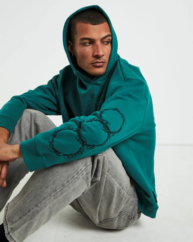 The Embroidering Hoodie by Blacknoise/White Rain comes in a pine green colourway. This design features a relaxed fit, long sleeves, hood, kangaroo pocket and finished off with ribbed cuffs and hem.
