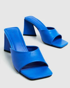 The Highlight Heels by Alice In The Eve come in a bright blue colourway. The heels are an open toe design and feature a chunky heel.