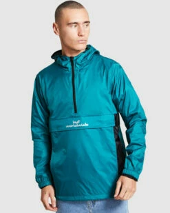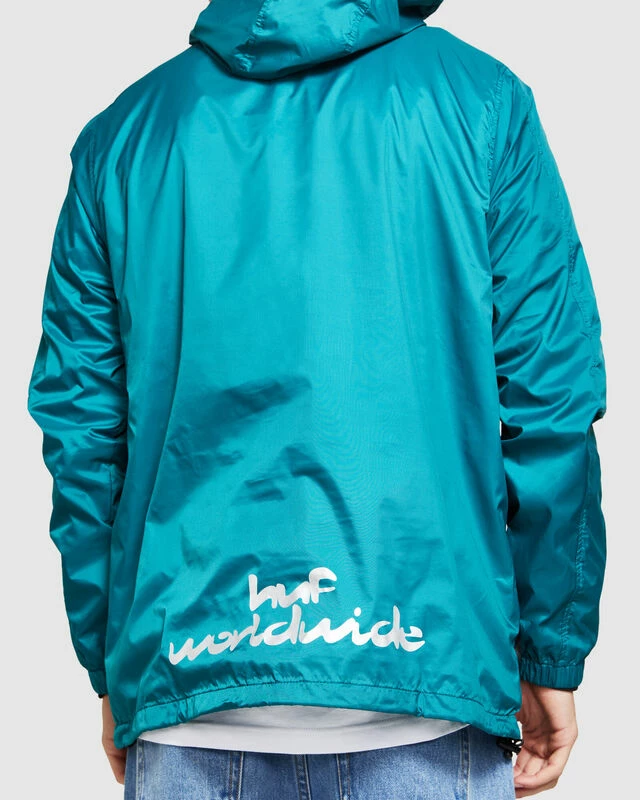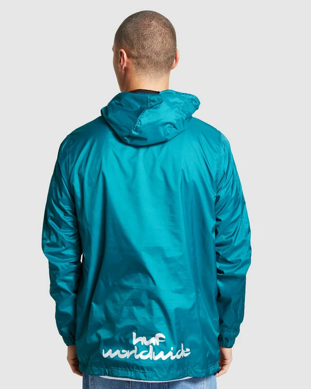 The Chemistry Anorak Jacket by Huf is a relaxed-fitting long sleeve spray jacket. This style comes in a dark green colourway with logo graphic at centre front and reverse, quarter zip design, drawcord hood, interior mesh lining, drawcord hemline and a large zip pocket at front. This jacket will take you anywhere, layer it over black pants and low cut Vans for a classic combo.
