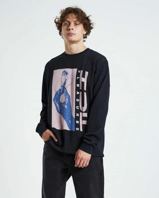 The Light Up Jacquard Knit by Huf x Pleasures comes in a black colourway, made from a super-soft knit fabrication. Featuring collaborative jacquard artwork at front with long sleeve design, crew neckline, regular fit and finished off with ribbed trims. Pair it over relaxed jeans, sneakers and an overshirt for a supreme fit.