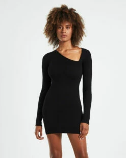 The Indy Asymmetric Cut Out Knit Dress by Alice In The Eve comes in a black colourway. Featuring an asymmetric neckline, bodycon mini fit with long sleeves and constructed in a stretchy ribbed knit material.