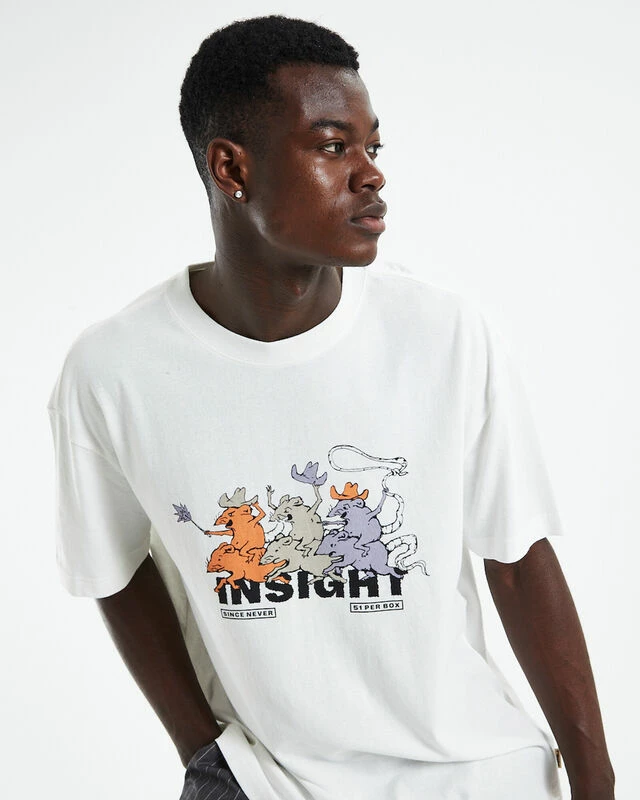 The Box Rats Short Sleeve T-Shirt by Insight comes in a White colourway and is a regular fit. This style is designed with colourful graphics and black branding at centre chest, short sleeves and a crew neck. Pair back with black shorts and Converse for an effortlessly casual look for a day out.