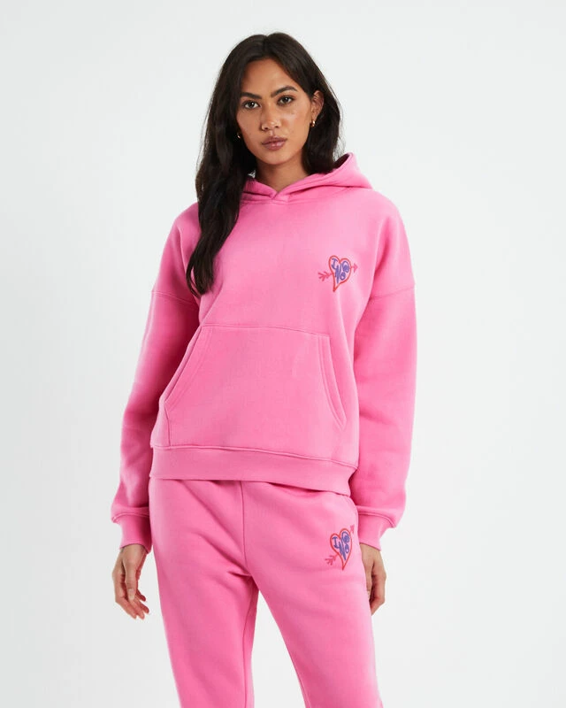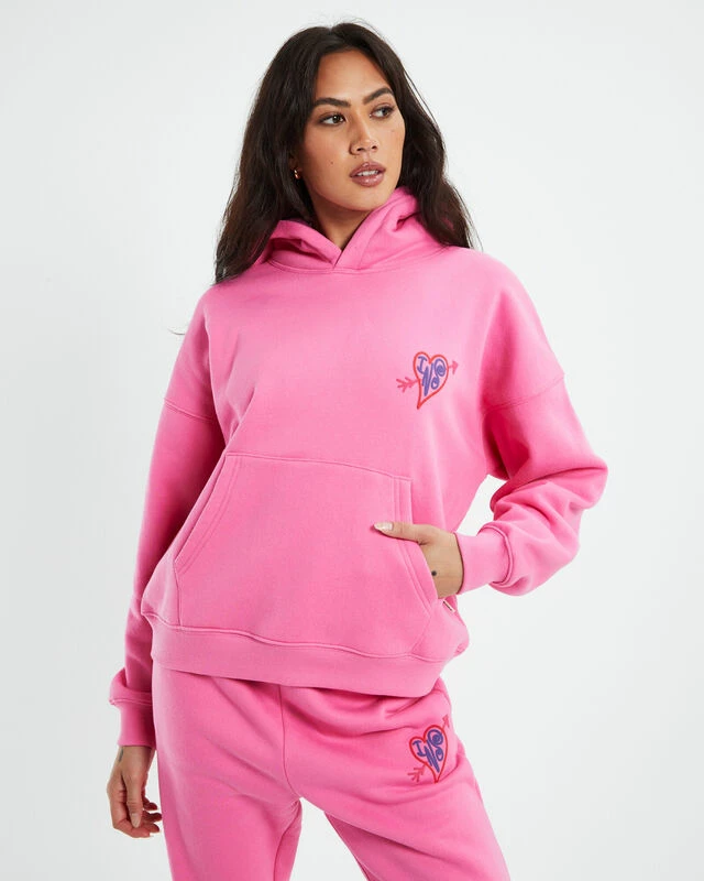 The Cross My Heart Fleece Hoodie by Insight comes in a bright pink colourway and features signature branding at the left chest. This style features a thick hood, pouch pocket and ribbed trims. Pair it back with track pants and sneakers for a sporty, athleisure look.