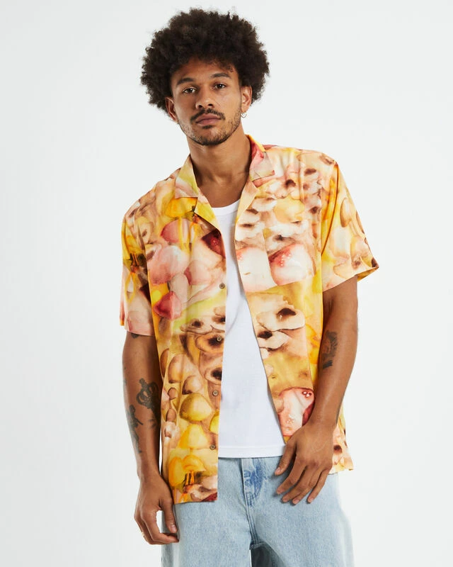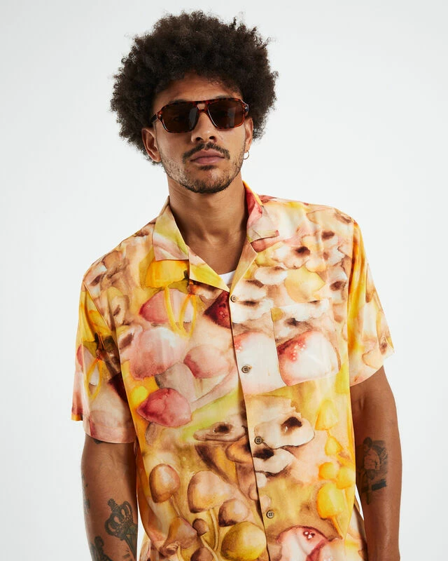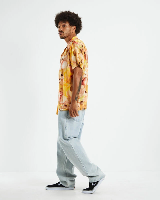 The Gili Short Sleeve Shirt by Insight comes in a yellow colourway with an abstract print throughout. The shirt is a relaxed fit and features a button-up front, left chest pocket and collared neckline. Wear it this party season with baggy denim jeans and slip-on Vans.