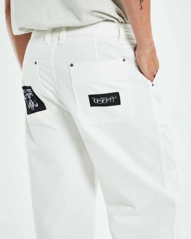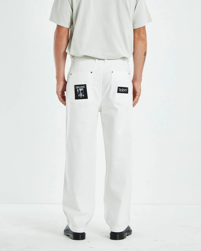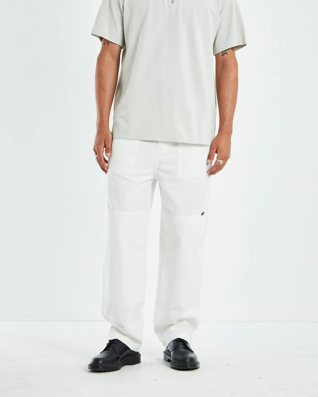 The Good Home Pants by Insight comes in a white colourway and feature a carpenter style. This style is crafted in a durable cotton canvas, featuring a relaxed fit, straight leg profile, zip fly with button closure and utility pocket design. Style it back with a basic singlet, an overshirt and Dr Martens for a classic look.