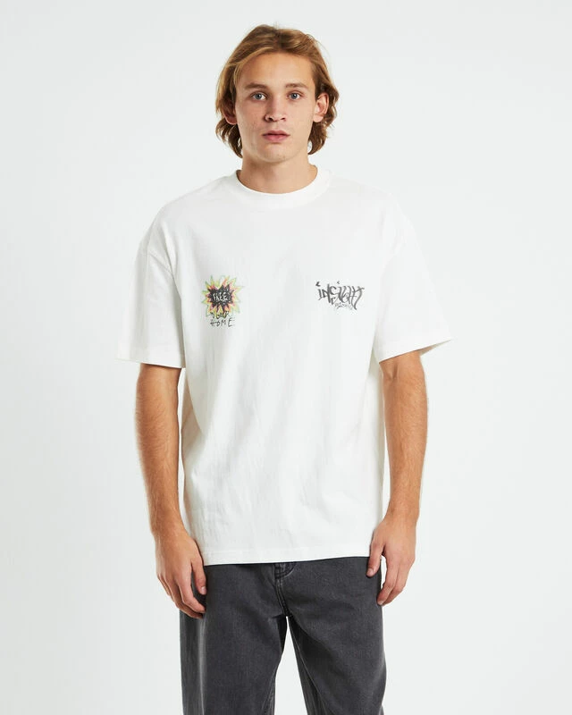 The Good Home Short Sleeve T-Shirt by Insight is a staple tee that comes in a white colourway. The t-shirt features signature branding at the left and right chest, short sleeves, ribbed crew neckline, straight hem and is designed in a regular fit. Pair back with black baggy jeans and slip-on Vans for a casual look.