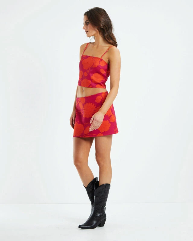 The Jojo Acid Floral Top by Insight comes is crafted with a soft knitted fabrication and comes in a pink and orange colourway. The top features a square neckline, thin adjustable straps, floral print with contrasting colours and a zipper at the back. Make it a two-piece set with the Jojo Acid Floral Low Rise Mini Skirt.