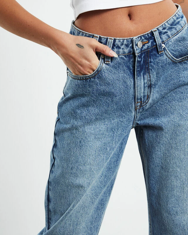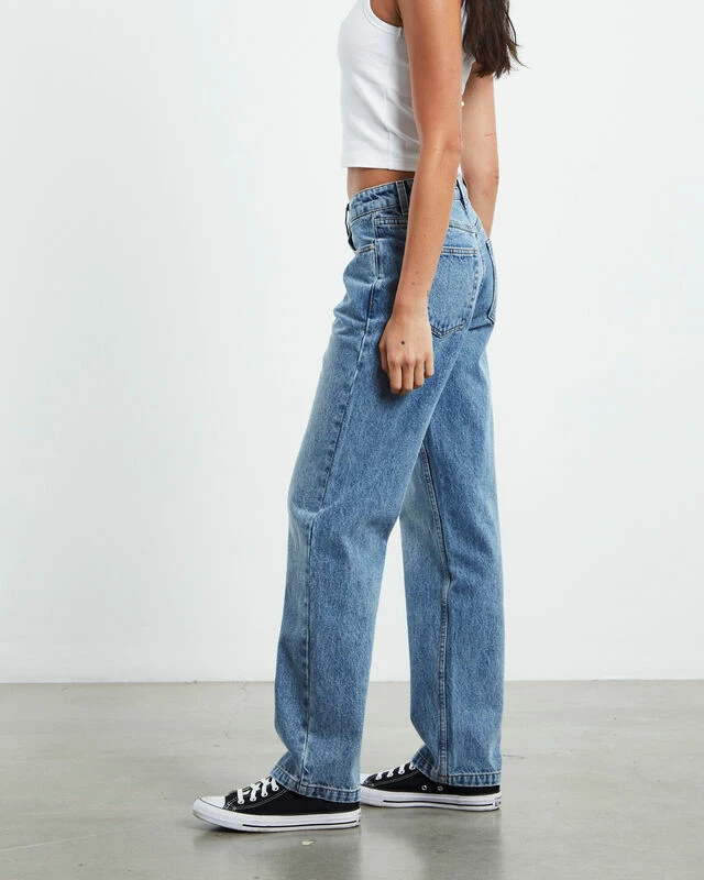 The Muse Mid Rise Straight Dad Jeans by Insight come in a mid 90’s blue wash and feature a straight leg profile. The jeans are designed with a mid rise, five pocket styling, belt loops, relaxed fit, zip fly with button closure and brand patch at the reverse. Style this with a basic white tank and converse for an everyday look.