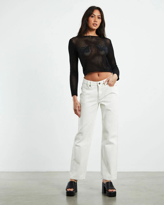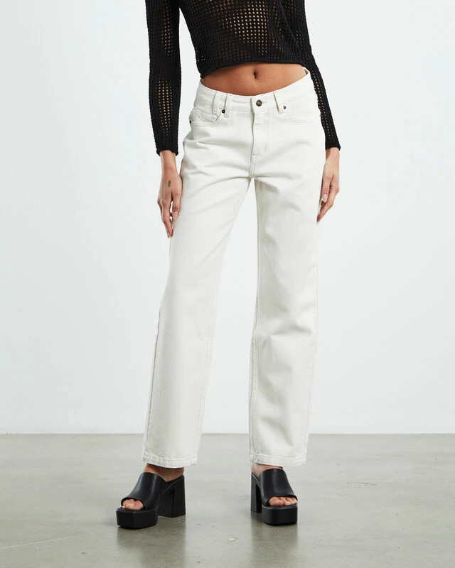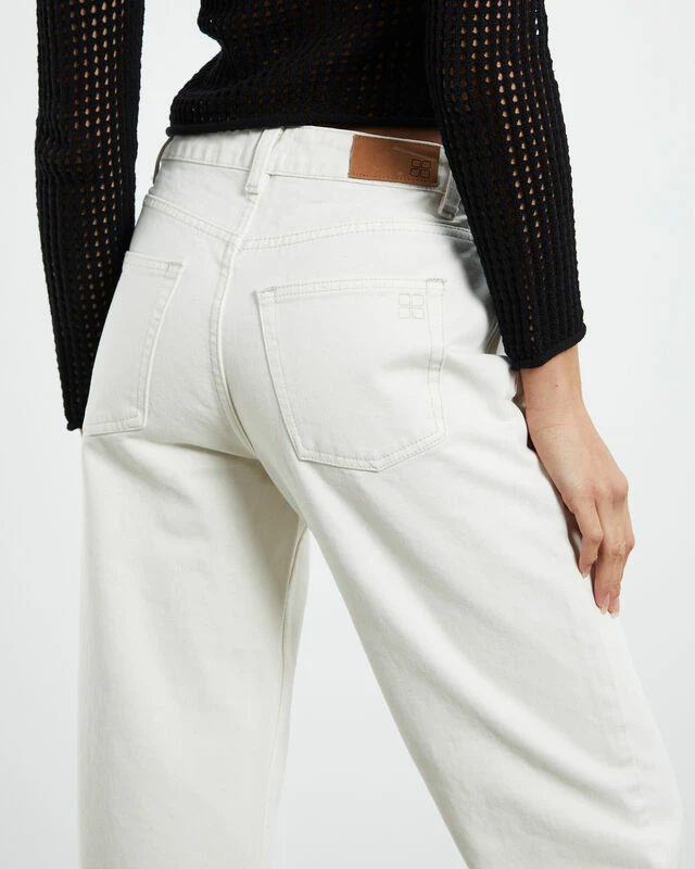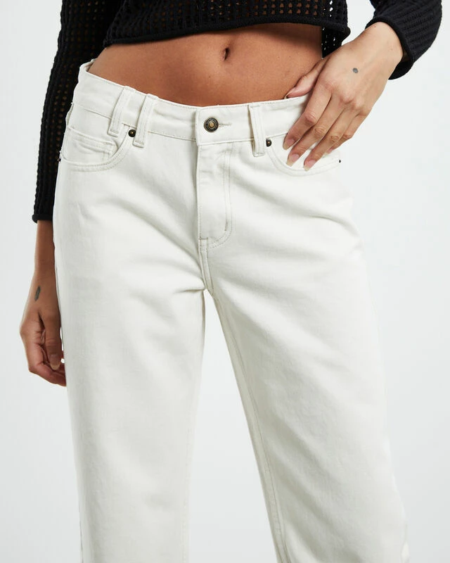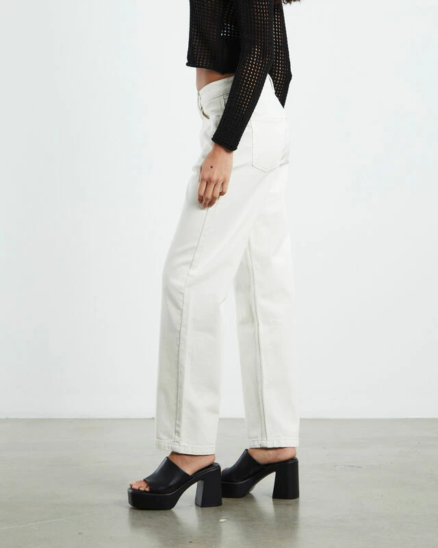 The Muse Mid Rise Straight Dad Jeans by Insight come in a vintage ecru wash and feature a straight leg profile and relaxed fit. The jeans are designed with a mid rise, five pocket styling, belt loops, zip fly with button closure and brand patch at the reverse. Style this with a crochet top and a chunky heel for for an effortlessly cool look.