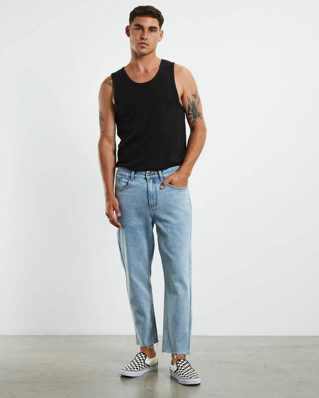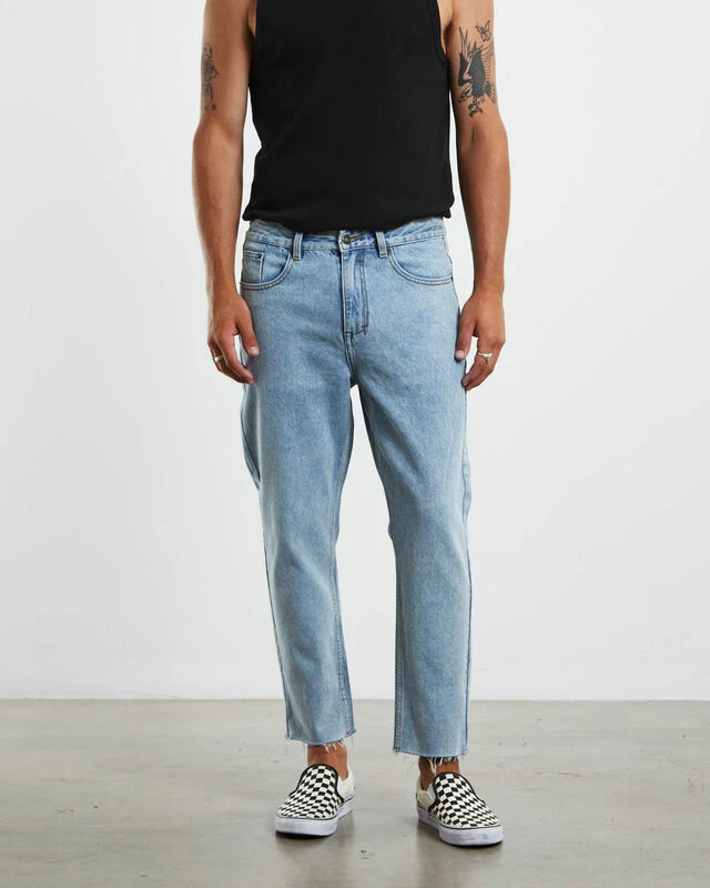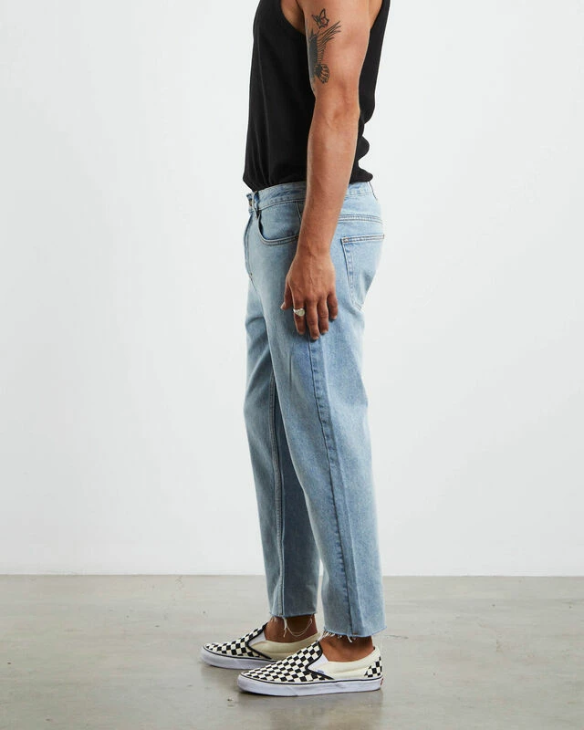 The Switch Jeans by Insight are low rise, relaxed fit jeans with a slim leg that tapers in at the ankle. These jeans are made of a lightweight denim fabrication and come in a classic blue wash, and also feature five pockets, zip fly with button closure, branded hardware, tonal stitching, leather patch at the back and a raw cut hemline. Pair with an oversized trucker jacket in the cooler months for a look that’s sure to gather attention.