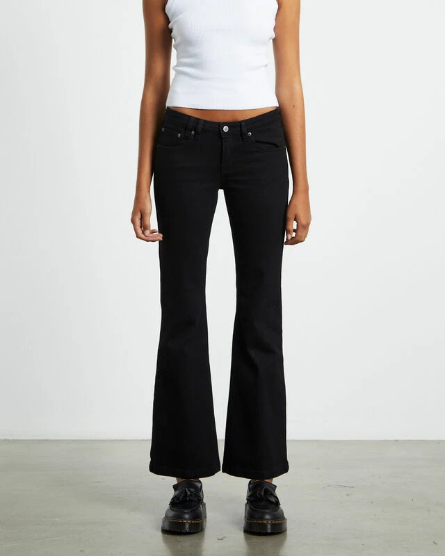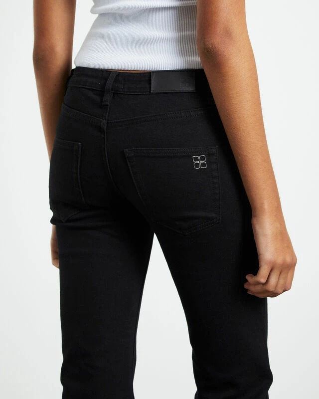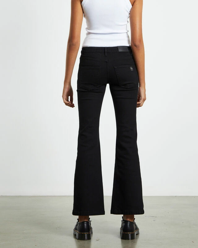 The Syd Stretch Low Rise Bootleg Jeans by Insight are a slim bootleg cut jean crafted in a denim stretch fabrication for comfort. This style comes in a jet black wash and features a low rise, 5-pocket styling, belt loops, zip-fly with button closure and a signature branded patch at the reverse. Style these jeans back with a simple white tank and loafers for a clean, go-to look.
