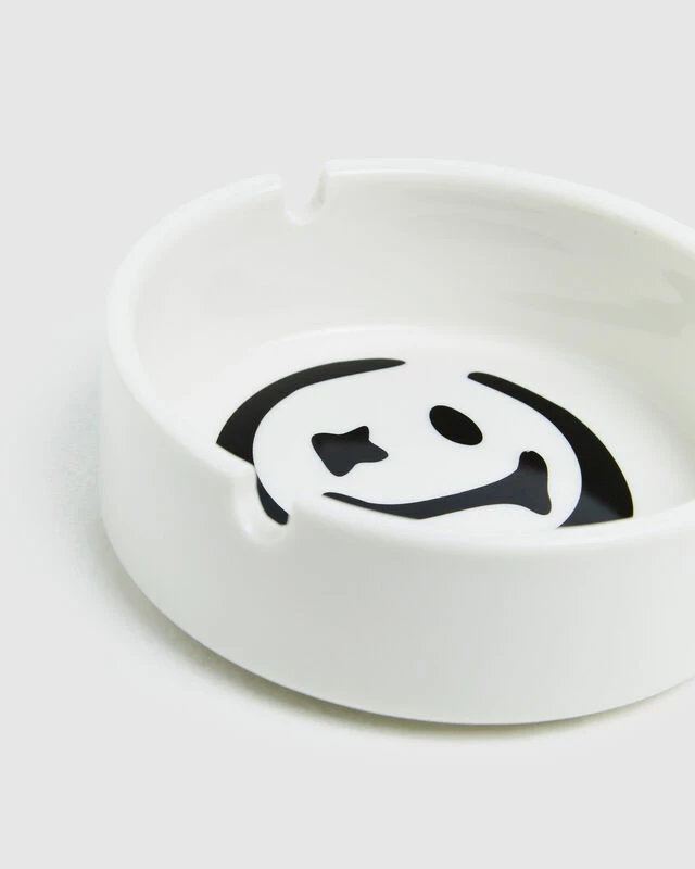 The Tripped Out Ash Tray by Insight is a white colourway with cermaic fabrication. The ash tray features Insight signature branding and a smiley face graphic.