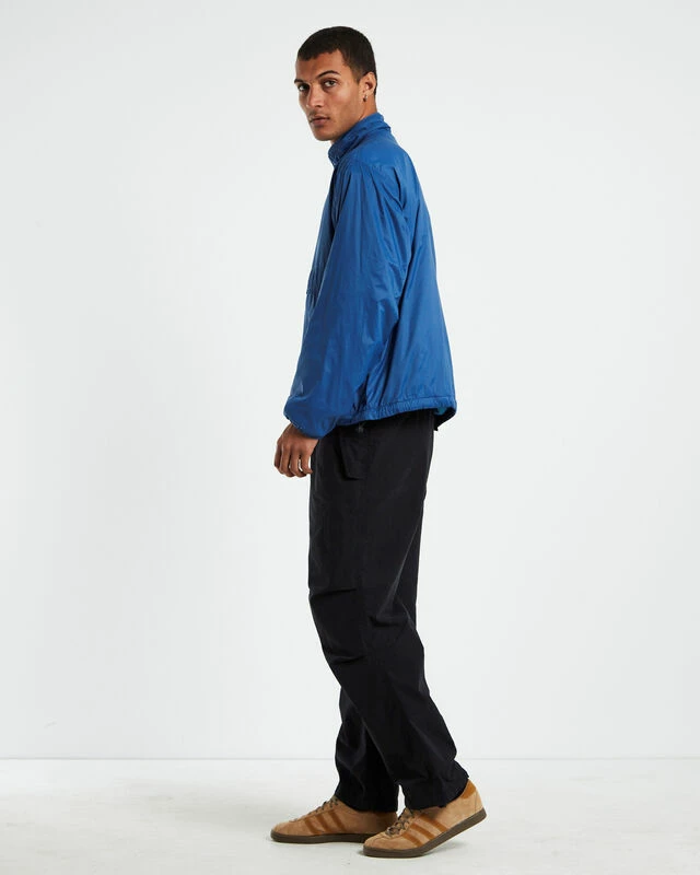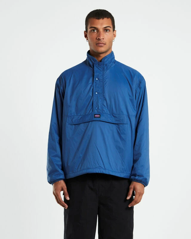 The Inuit Pop Over Jacket by Spencer Project comes in a blue colourway. Constructed in a pullover style with a 1/4 button up closure and signature front logo. Pair this with a pair of cargos and sneakers to complete the look.