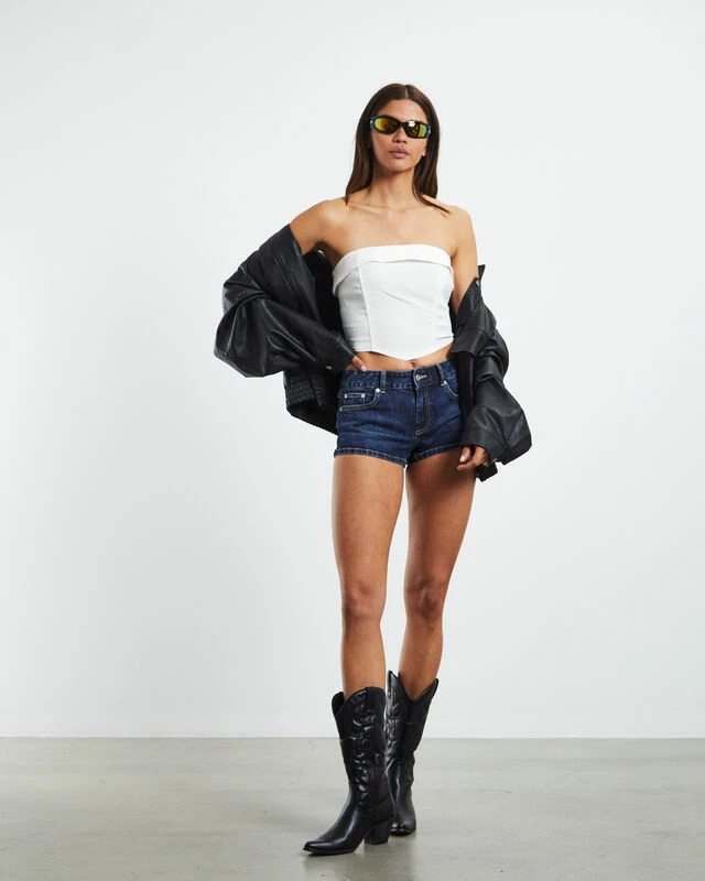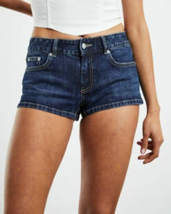 The Jada Low Rise Denim Shorts by Neon Hart are a Y2K-inspired super short style that comes in a deep blue colourway. The shorts showcase a low rise design, zip fly with button closure, belt loops, five pocket design and contrast tobacco stitching. Wear it with oversized sunnies, a fitted tee and cowboy boots to complete the look.