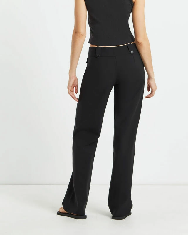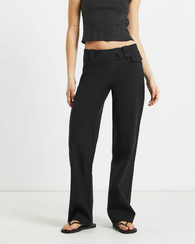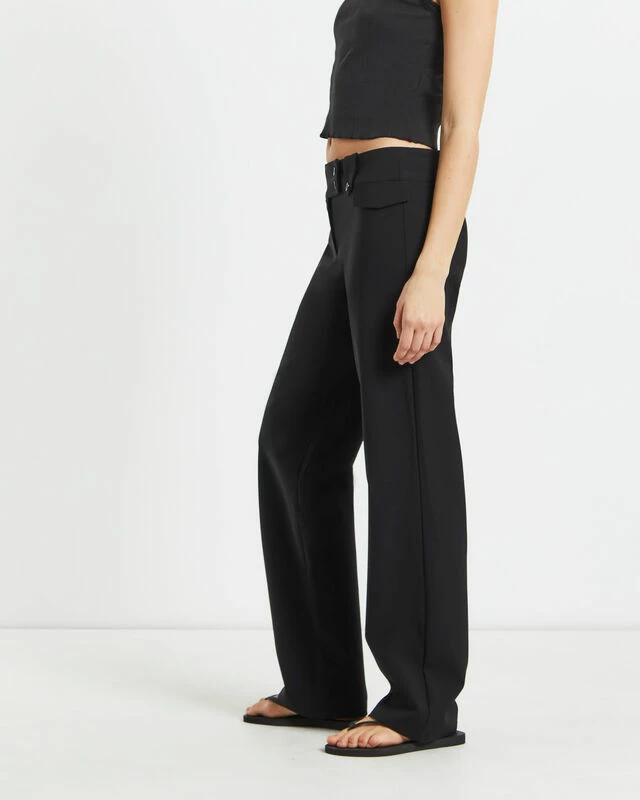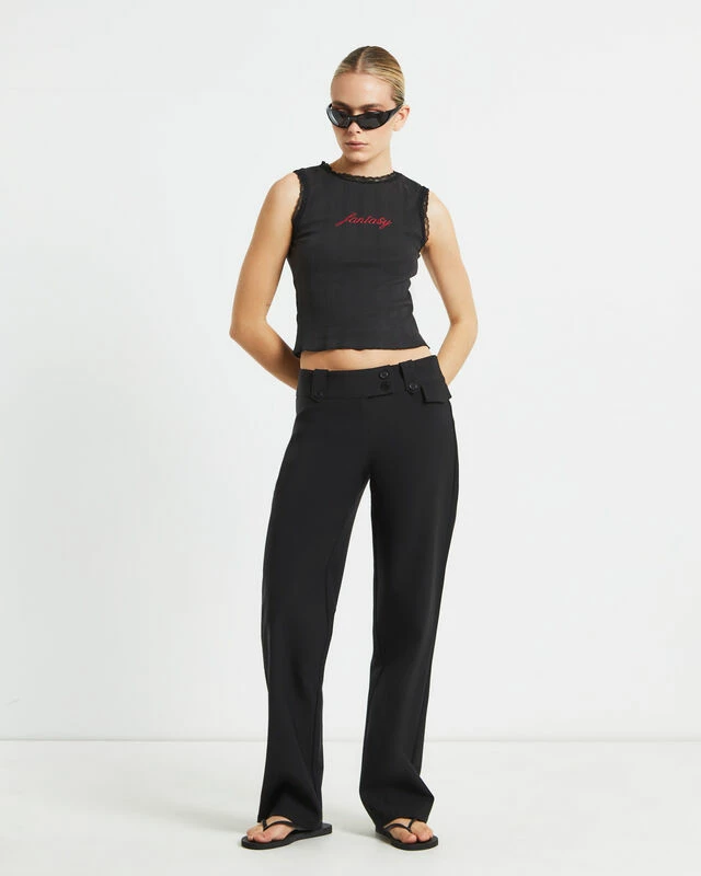 The Jaylee Low Rise Seam Front Pants by Neon Hart comes in a black colourway. The pants feature a low rise design, zip fly with dual button closure, vintage-inspired wide waistband, faux waist pockets and thick belt loops with button finishes. Create a vintage-inspired look by pairing it with a graphic tank top and platform Dr Martens.