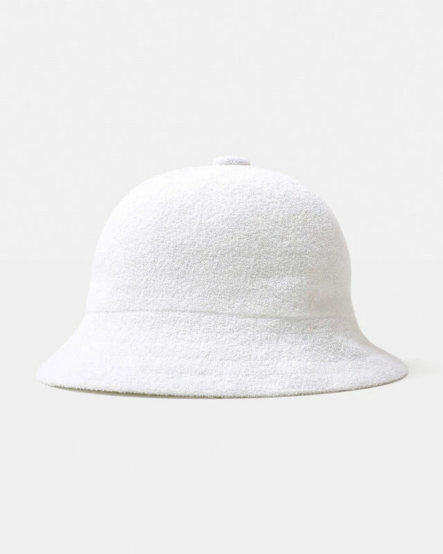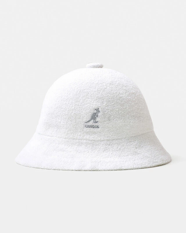 The Bermuda Bucket Hat by Kangol is a bucket hat made of a terry fabrication in a white colour way. This features embroidered logo at the front.