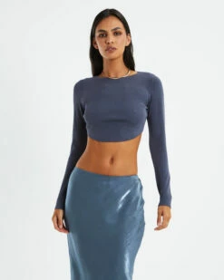 The Kaylee Knit Corset Top by Alice In The Eve comes in a slate colourway. The top is fitted and features a curved hem at front, high neckline, long sleeves and soft stretchy knit fabrication. Pair it with a maxi skirt and sneakers for a relaxed vibe.