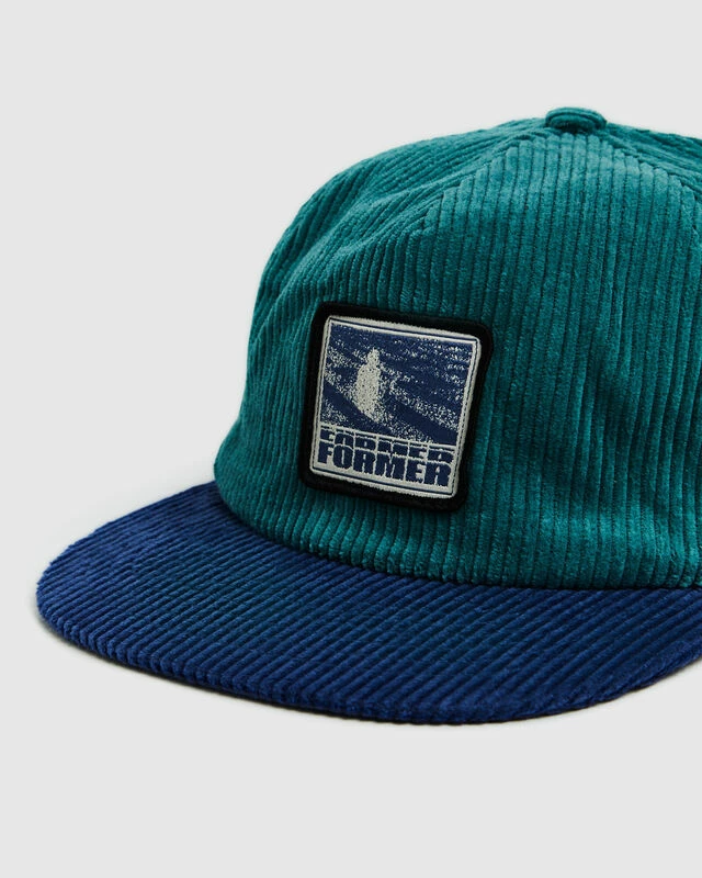 The Labyrinth Cap by Former comes in a blue and green colourway and is constructed in a corduroy fabrication. The hat features a flat brim, signature brand patch at the centre front, embroidered eyelets, adjustable buckle fastening and 5-panel design.