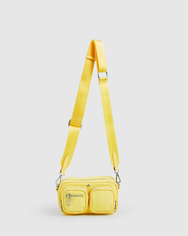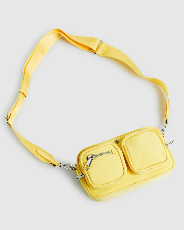 The Lala Crossbody Bag by Peta + Jain comes in a yellow colourway. The bag is crafted with a nylon shell and is fully lined. Featuring a zip-up front, dual external front pockets, internal zipped pocket, adjustable shoulder strap and silver hardware.