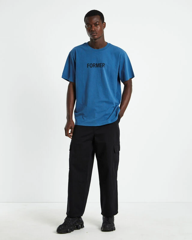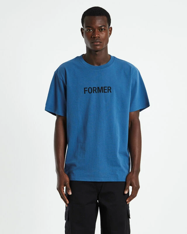 The Legacy T-Shirt by Former comes in the cadet blue colourway. This design features a standard fit, contrast graphic logo at centre front, short sleeves, ribbed neckband, premium cotton fabrication and a straight hem. Team it back with black pants and sneakers for a sleek style every time.