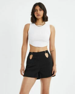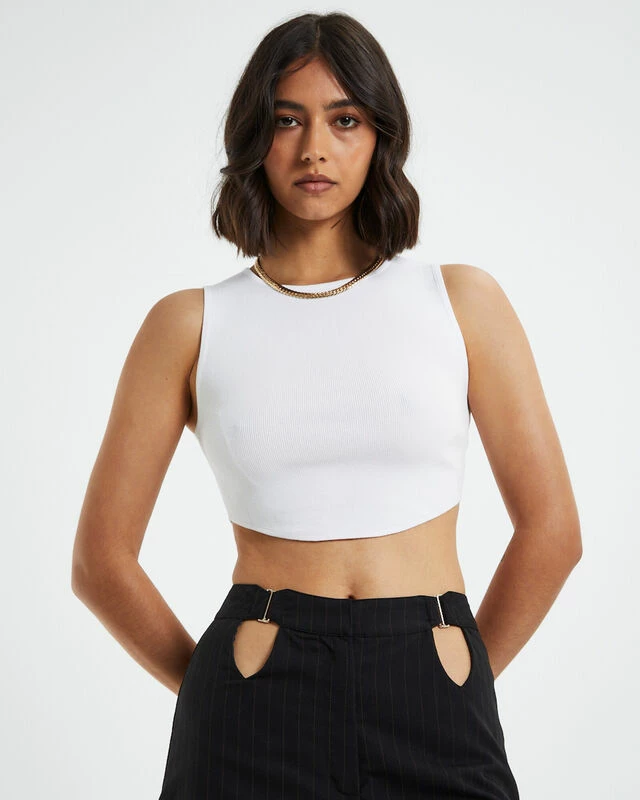 The Leona Corset Knit Tank by Alice In The Eve comes in a white colourway and is corset-style inspired. The tank is cropped in length and features a flattering high-neck design and racer back detailing. Style it with low rise jeans and sandals for an easy clean cut look.