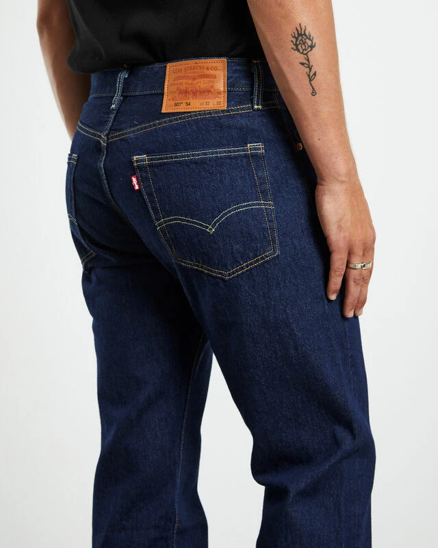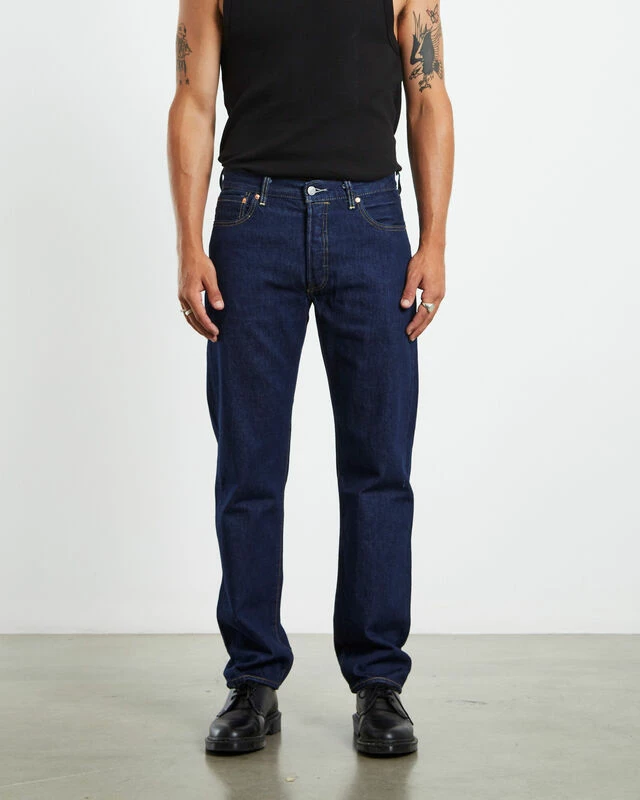 The 501 Original Jeans by Levi’s come in a classic blue wash. The piece features zip fly and button closure, belt loops, five pockets and a tan brand patch at the reverse.