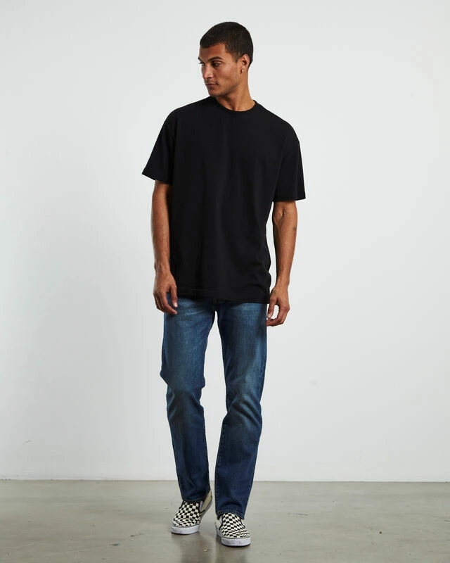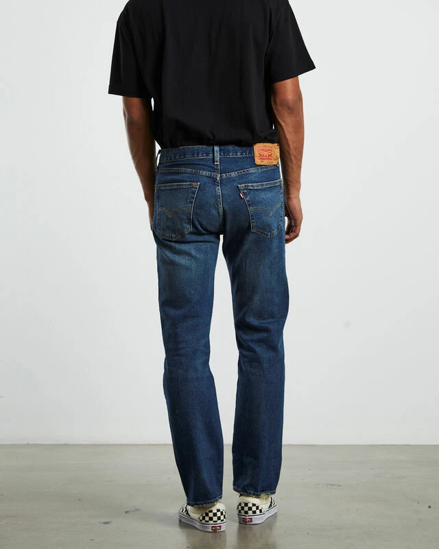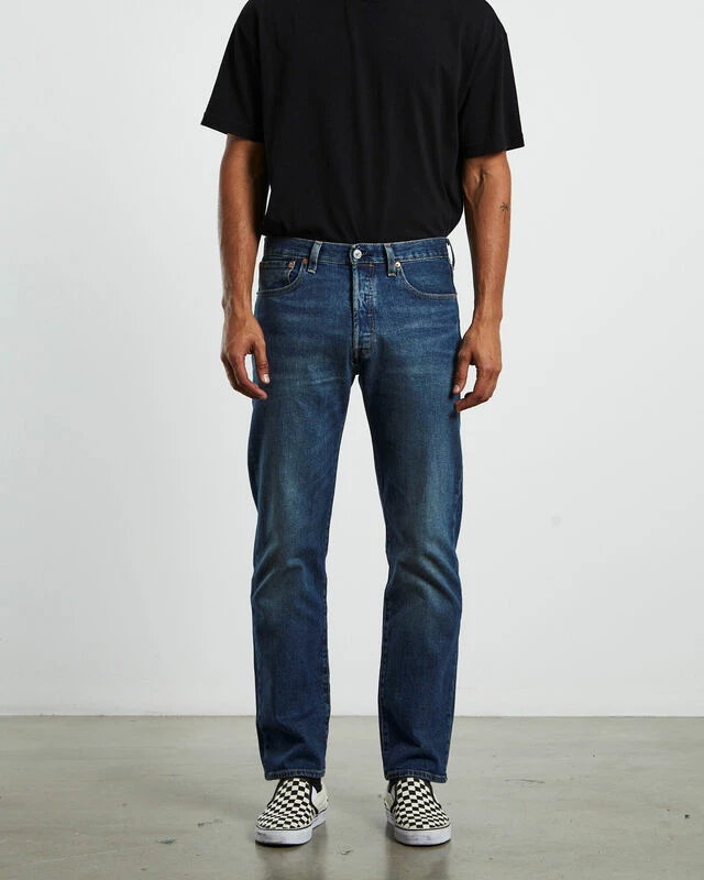The 501 Original Denim Jeans by Levi’s are an iconic straight leg fit. The piece comes in a rough trade blue wash and features zip fly and button closure, belt loops, five pockets and a tan brand patch at the reverse. Team the look with a black tank top and Dr Martens for a clean look.